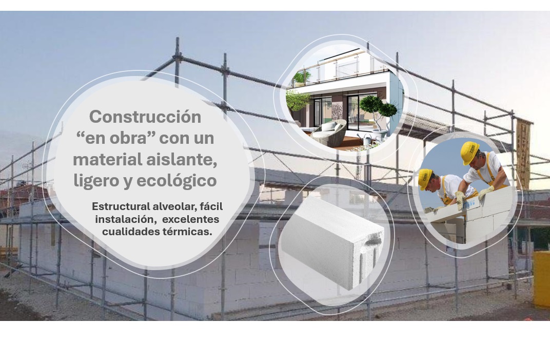 Destaca su rapidez ya que podemos levantar la estructura en muy poco tiempo. Se adapta a la configuración del terreno y a las necesidades específicas de la obra. Excepto la cimentación, todos los trabajos se realizan en seco, sin uso de agua, utilizando un mortero que se general al unir el polvo del hormigón celular que se obtiene del corte de los bloques, con una pasta adhesiva especial. Se reducen, por tanto, al máximo los tiempos de trabajo de operarios en la obra y se maximiza la eficacia del trabajo en la obra. Reducimos transportes, tanto de material como de personal, y consumos de energías no renovables.