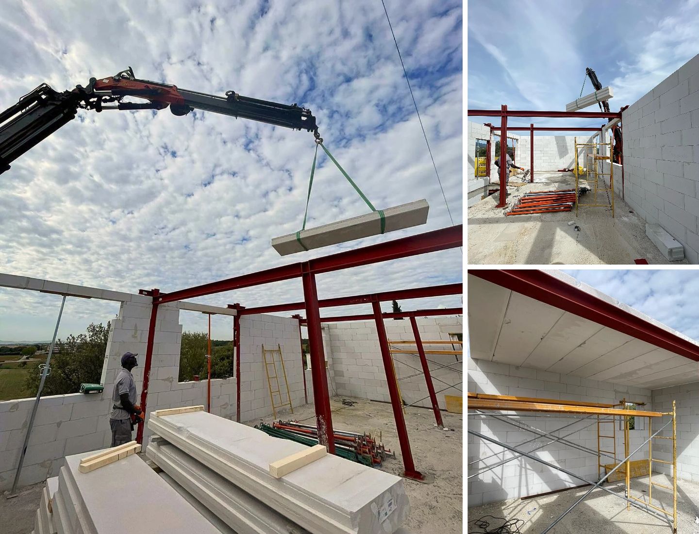Las placas de forjado y cubierta son placas de hormigón celular armadas fabricadas a medida, capaces de soportar cargas elevadas sin necesidad de capa de compresión.