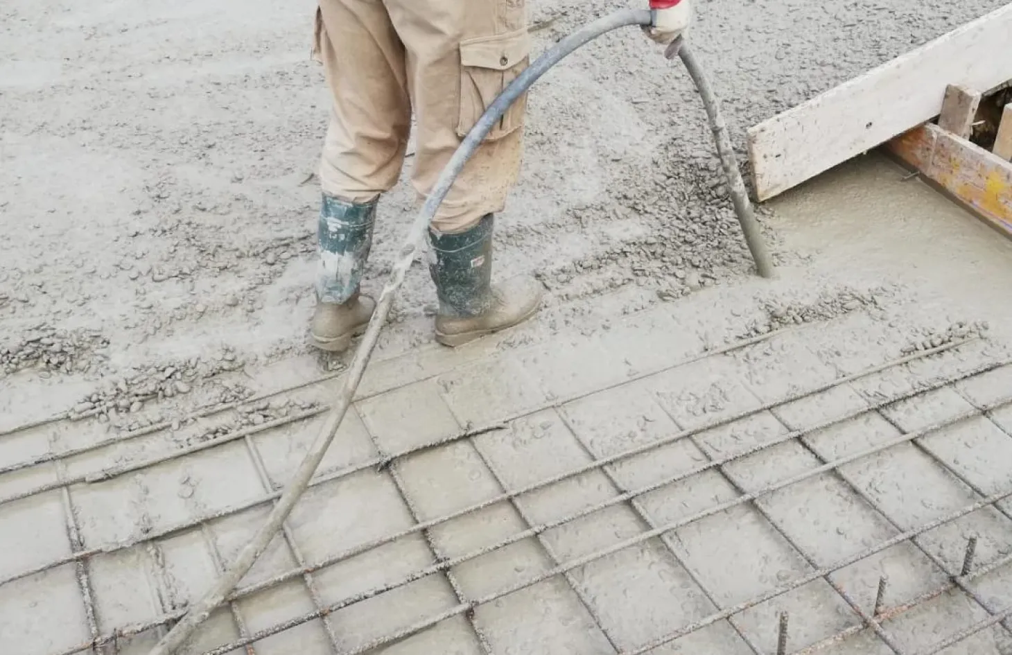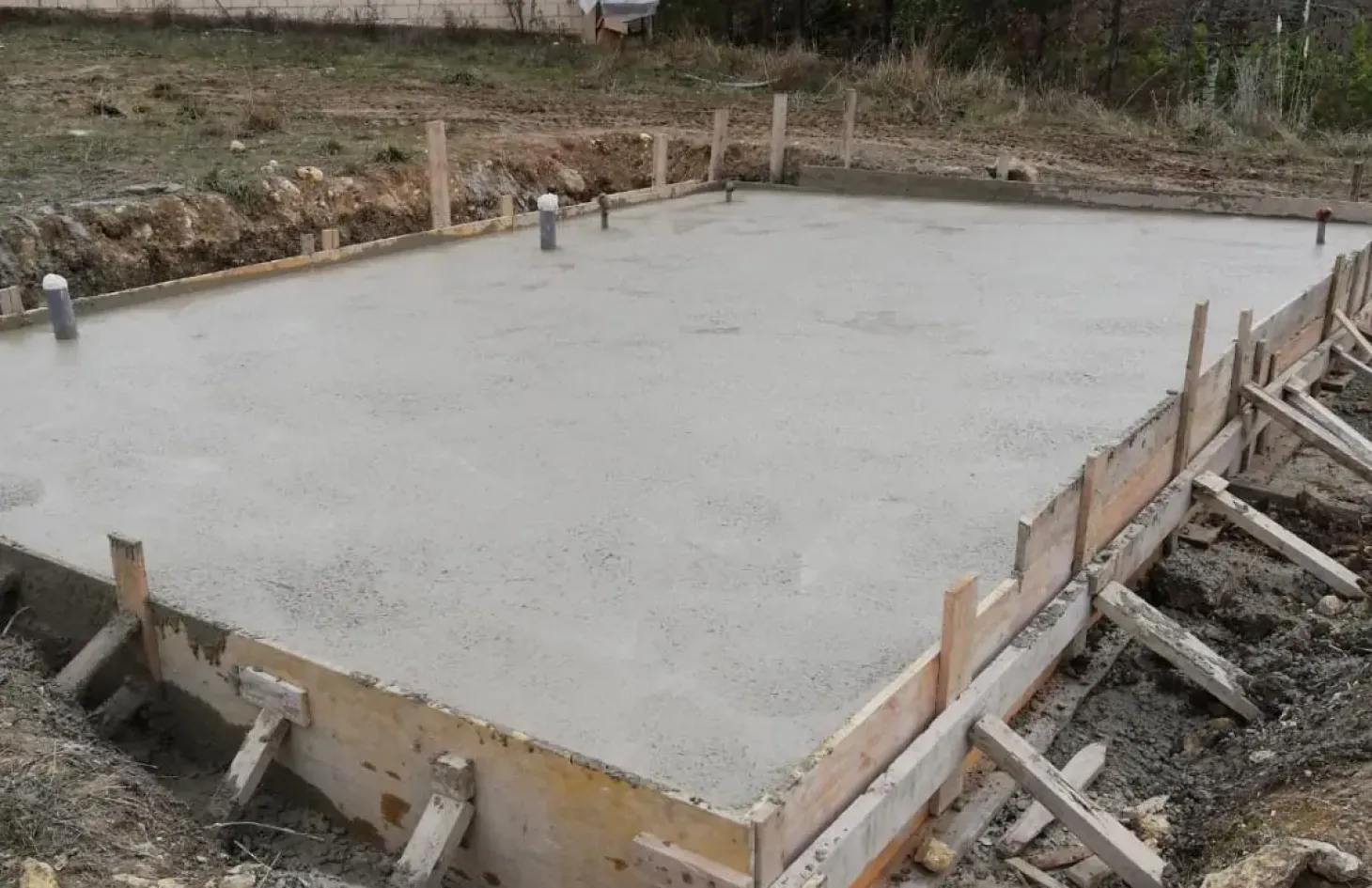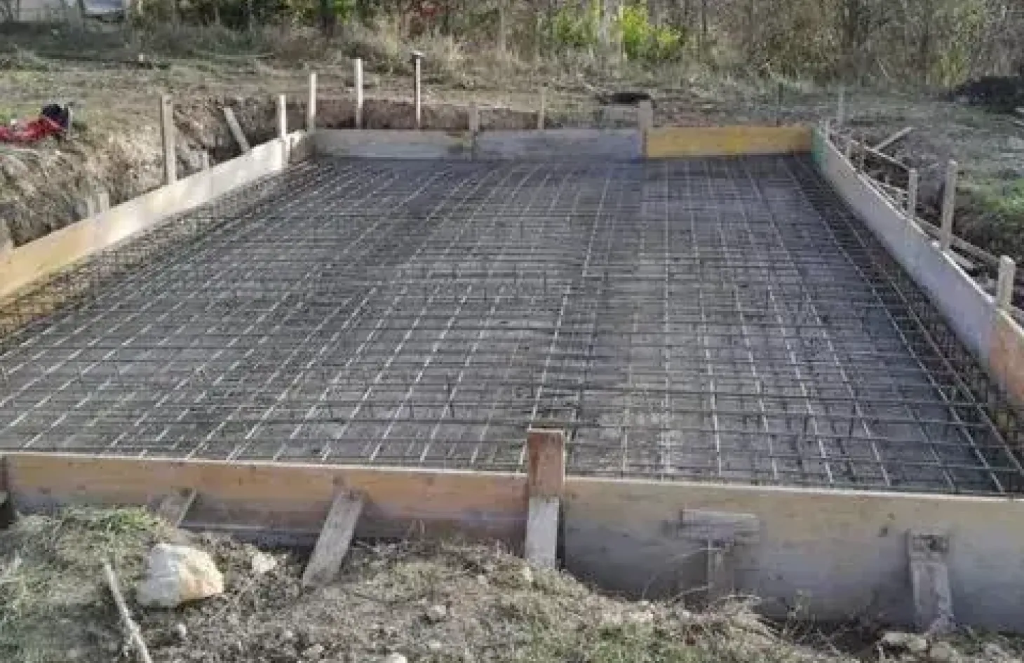 La cimentación está formada por una losa de 40 cm de espesor incluyendo la ferraya indicada en el proyecto. Para evitar el contacto entre la losa de hormigón y la madera, instalamos una capa de tela asfáltica (4 Kg)