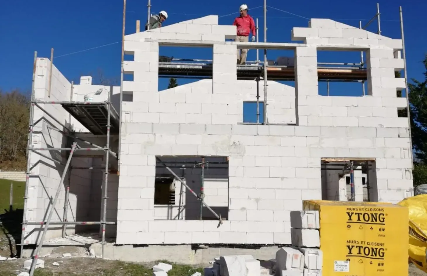 Para la estructura se optó por una estructura de bloques de hormigón celular, marca Ytong, de 25 cm de espesor. Por el interior se añadió un trasdosado de lana de roca y panel de pladur, consiguiendo de esta forma una certificación energética muy alta.