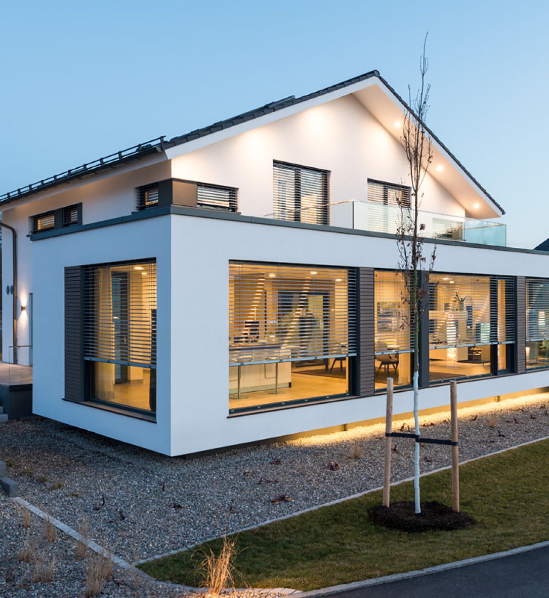 Lo mostramos para reflejar que también se pueden construir casas con ventanales más grandes, como las que se estillan en Centro Europa pero la estructura de Ytong es la misma. En ambos paises utilizamos un trasdosado interior con lana de roca para impermeabilizar y cumplir con el CTE de cada país.