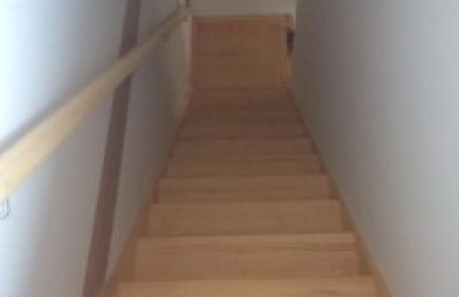 Cuenta con dos alturas con una preciosa escalera de madera vista que comunica ambas plantas por el interior. El garaje se construyó aparte.