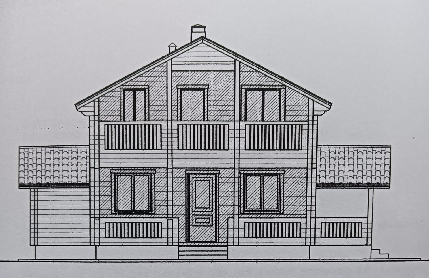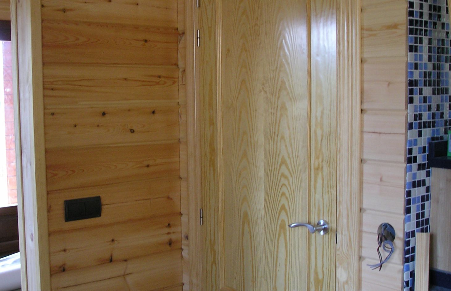 La estructura de la casa se basa en un sistema de troncos macizos planos de 92 mm de espesor en madera de PINO ROJO FINLANDES con aislamiento termo-acústico de lana de roca o similar de 80 mm con barrera de vapor y panelado interior de friso de madera de 18mm formando todo ello un doble tabique. Entre los troncos se coloca un aislante natural denominado EKO-LANA, para atenuar y evitar las posibles filtraciones de aire a la cámara. El groso total de los muros exteriores es de 21 cms.
