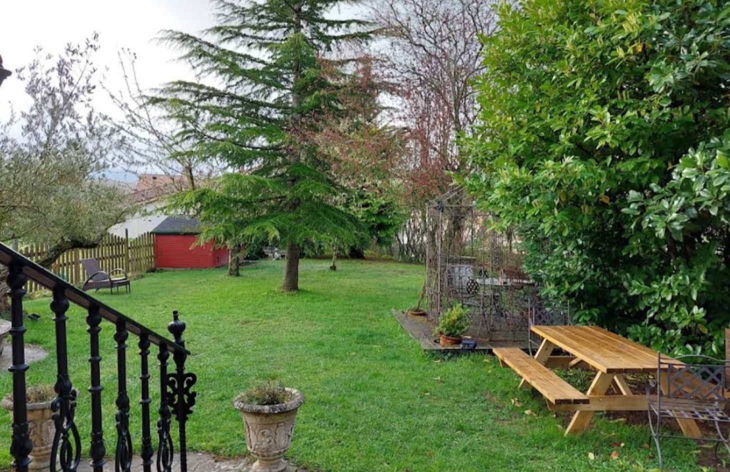 Con capacidad para 7 personas, cuenta con un bonito porche en la planta baja, una amplia terraza en la primera planta y 4 habitaciones. Dispone de cocina completamente equipada, salón comedor, 2 baños, 1 sauna finlandesa adjunta a la habitación principal. En el exterior se puede apreciar un amplio y cuidado jardín con flores, pinos, frutales, invernadero, zona de barbacoa, y glorieta junto al río. Ideal para desconectar unos días.