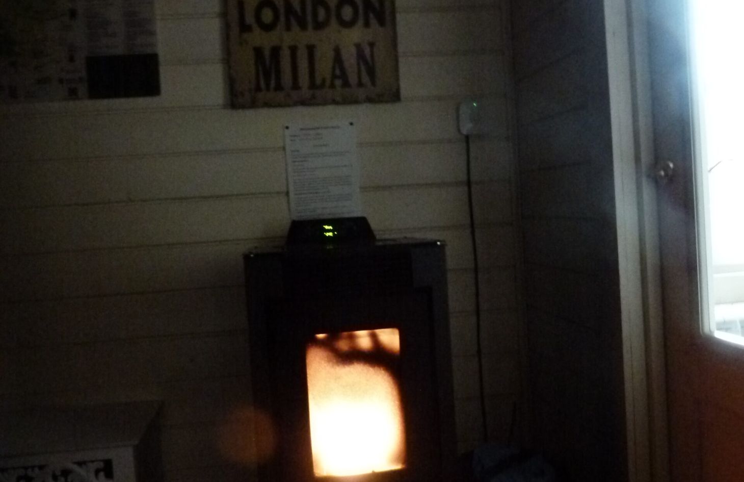 La calefacción viene provista por una chimenea francesa prefabricada de leña instalada en la zona del salón que calienta gran parte de la vivienda, junto con unos radiadores eléctricos de bajo consumo instalados en la planta primera.