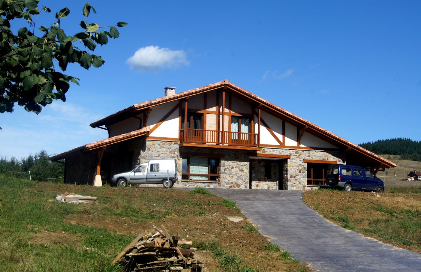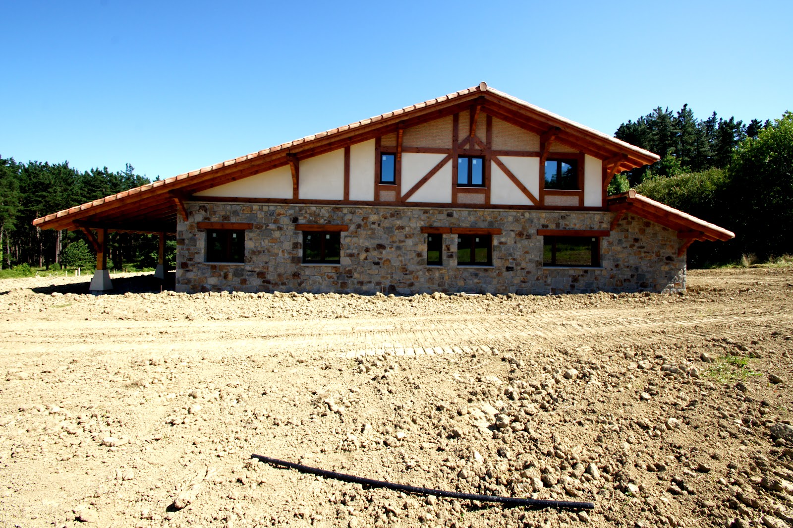 En este caso, se apostó por una vivienda construida con un sistema de entramadol ligero de madera y elementos tradicionales como la piedra y madera local para decora fachadas. La superficie construida es de 155 m² distribuidos en planta baja y planta primera o bajo cubierta.