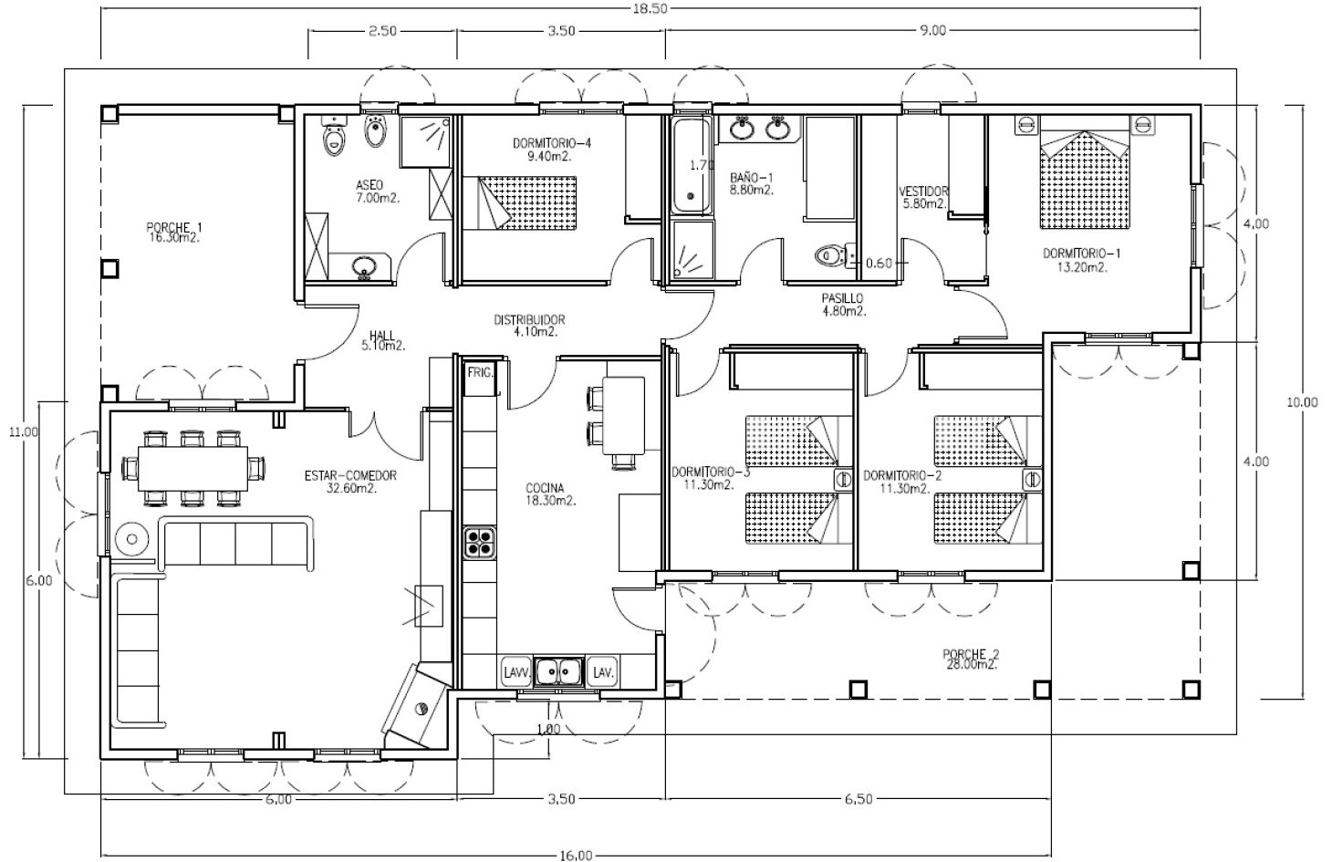 En fábrica se construyó el modelo ARABA I, el cual cuenta con una superficie útil de 133,90 m² se divide en salón-comedor, dormitorio A, dormitorio B, dormitorio C, dormitorio D, baño 1, baño 2 y Cocina, Hall, distribuidor y pasillo.